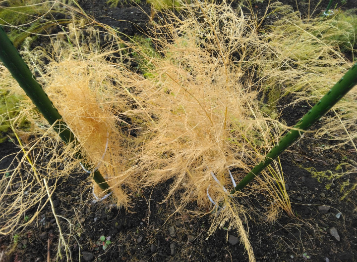アスパラが枯れてきましたまだ少し黄緑色の株もありますがようやく枯れてきましたね春頃にまた新しい芽を生やしてくれると良いですね