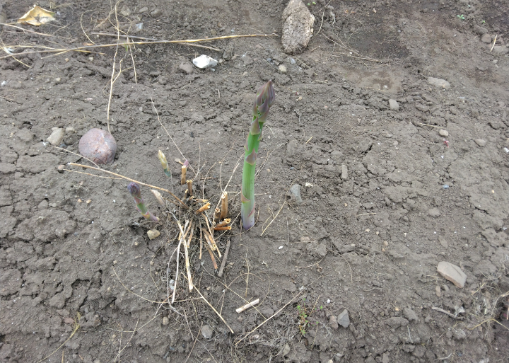 暖かくなってきてアスパラの新しい芽が出てきました根を育てるためにこれは収穫せずにそのままにしておこうと思います