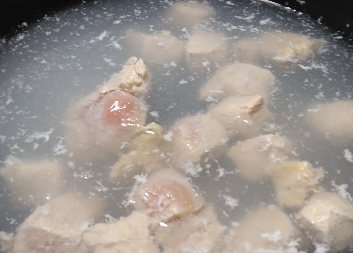 鶏ムネ肉と野菜のスープを作りました具材は、鶏ムネ肉、にんじん、玉ねぎ、じゃがいも、長ねぎ、しめじ、干ししいたけ、ごぼう、蒸し黒豆を使いました鍋に水を入れて沸騰させてから鶏ムネ肉を入れて灰汁をある程度取り除きました残りの具材を入れて煮立たせました鰹節を加えました白だしを味見しながら適量加えて蓋をして煮ました野菜が柔らかくなったら完成です干ししいたけから色が出たのか汁が黒くなってしまいましたが美味しく出来ました