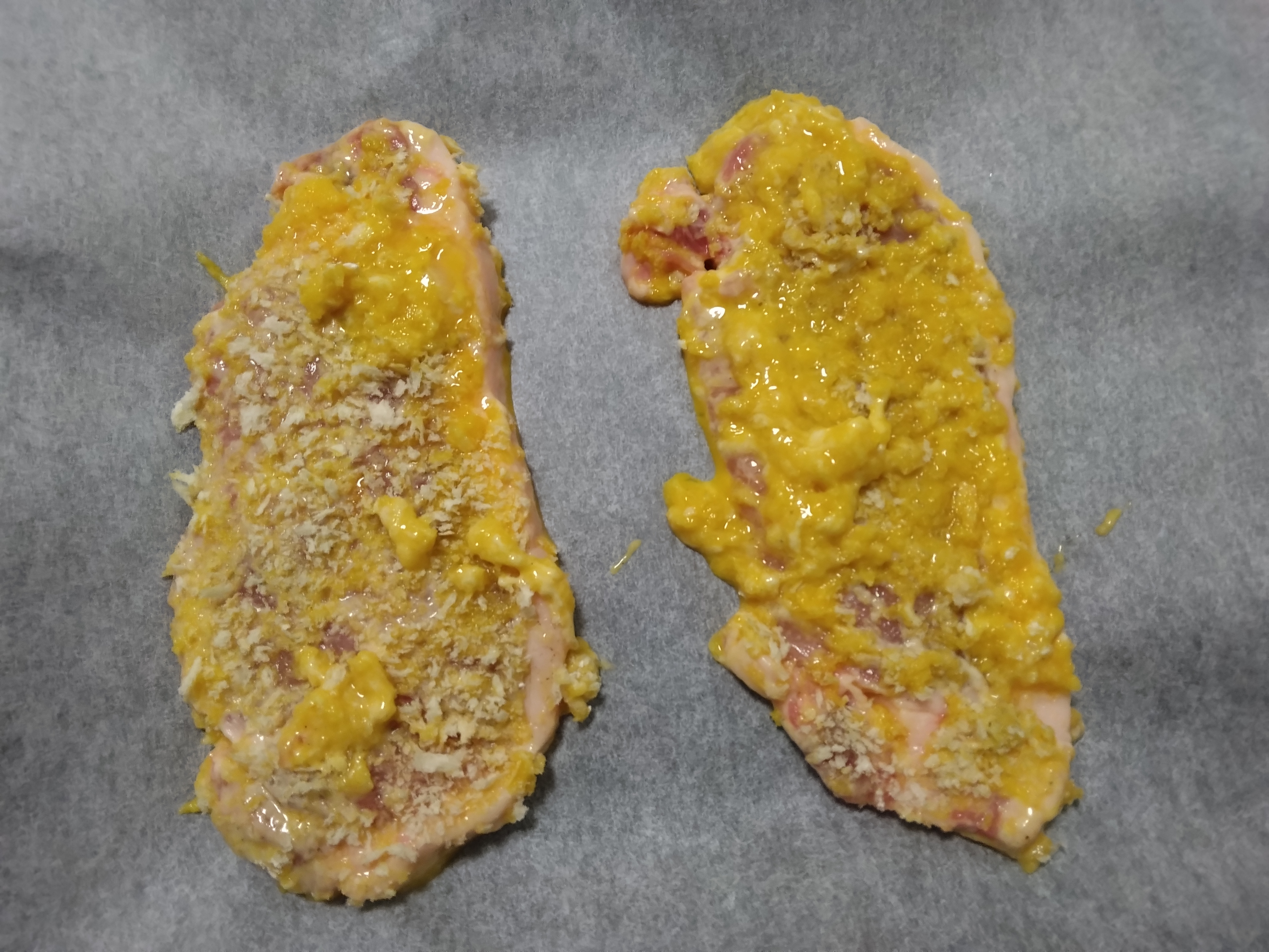 オーブンでとんかつを作りましたとんかつ用の豚肉に塩コショウをふったあと小麦粉、溶き卵、パン粉を順番につけましたオーブン用のトレーにクッキングシートを敷いて先ほどの豚肉を並べましたオーブンで200℃で10分焼いた後、裏返して10分焼きました卵をつけすぎて衣がサクサクにはなりませんでしたがこれはこれで美味しくいただけました