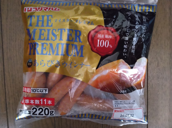 プリマハムの国産豚肉100%のあらびきウィンナーを買ってきましたウィンナーをフライパンで炒めました皮がパリッと食感も良くて美味しかったです