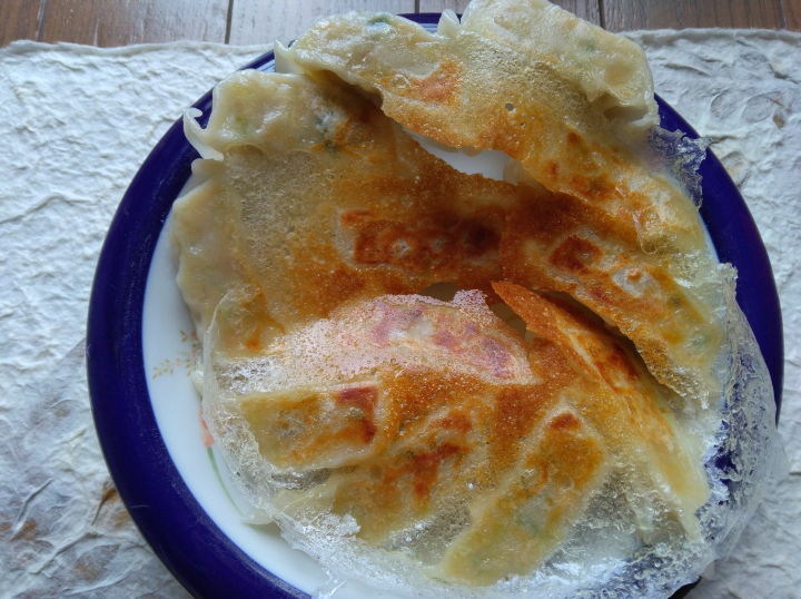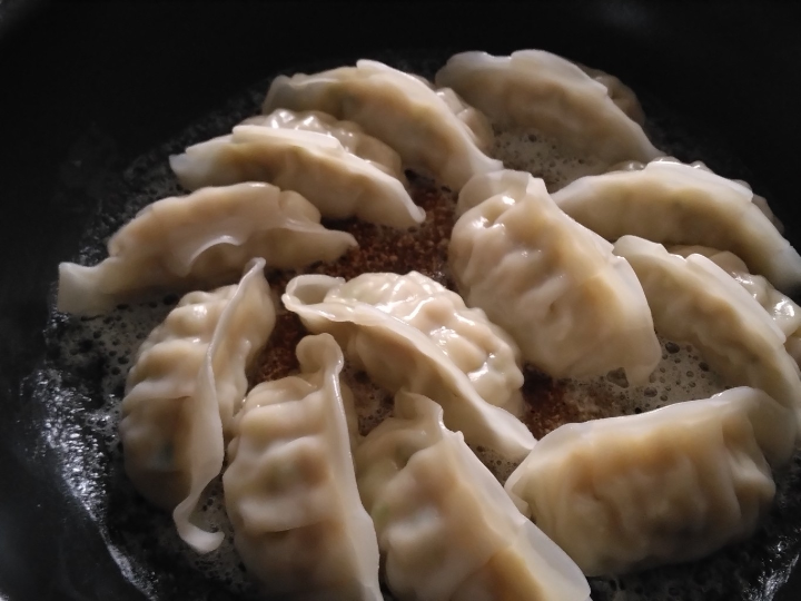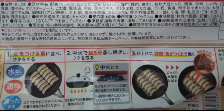 凍ったままの餃子をフライパンに並べました蓋をして中火で5分焼いた後蓋を取って羽根がきつね色になるまで焼きましたフライパンをひっくり返してお皿に盛りましたそのまま焼くだけなので簡単に作れて 国産の具材が使われていて美味しかったです