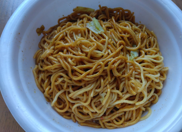 もちもちした麺にピリ辛スパイスがよく合って美味しかったです