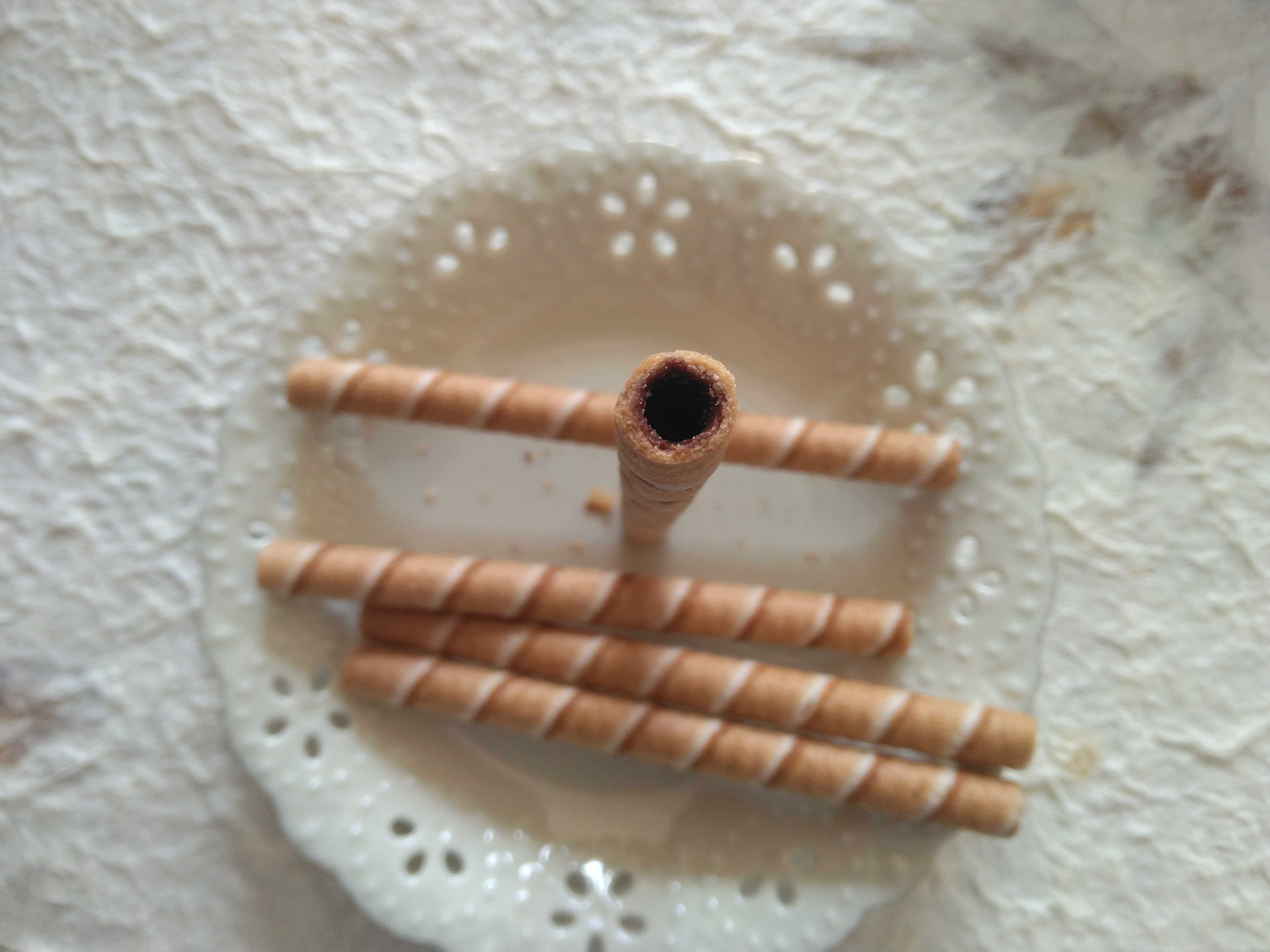 砂糖が外国製造のお菓子が多い中、国内製造でした筒状のビスケットの内側にチョコレートが入っていて美味しかったです