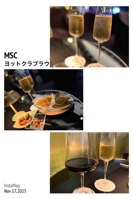 夕食はMSCヨットクラブレストラン今日もコースですただ毎日メニューが変わるので飽きません今日の一番はラムチョップこれは絶品でした