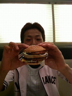 今井とマックご飯(^-^)/ レジで 今井「すいません、メガテリヤキのセットとマックナゲッ トと単品でテリヤキバーガーください!!」 誓二「はぁ?!どんだけ食べるんやて!!」 テリヤキ好きっていうのは知ってるけど、テリヤキ食べ すぎやし! ほんまどんだけぇぇ~(笑) メガテリヤキ食べて、並のテリヤキを食べにかかる 今井君(笑)