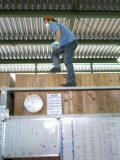 ・・・決して酔っぱらって高いところに登って遊んでるわけではありませんので(^^;)(笑)愛する家族のために頑張るお父さん 動きが若いっ ちょいちょいって登って行きました! 馬小屋の上に扇風機を取り付けるために登っております。 夏ゎ馬も暑いですからねぇ(^_^;) お父さん馬に乗っても若いですからちゃんとピースまでしてくれてありがとうございます(^○^) 日本一の愛妻家の布施さんでした~! 明日は雨みたいなので若干テンションあがりませんけど、頑張って仕事しまーす(^^ゞ 朝ゎだいたい5時前から仕事なんですけど、競馬場に比べたら遅いくらいですね(^.^) だいぶ仕事慣れてきましたけど、まだまだっすね まだまだおさる、デブです(笑) 名古屋の人に見られたら、きっと笑われます んぢゃ明日ゎ「奥村さん」を取材しよっと(笑)【携帯閲覧用写真】