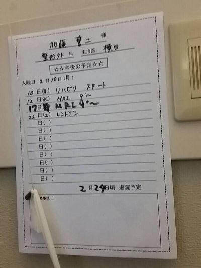 怪我をしてしまったから、仕事出来ないのと入院は仕方ないのですが、激しく退屈なんです(´;ω;`)ひたすら、地方競馬中央競馬のレース中継を見たりして時間を消化してます(´・ω・`)来週もMRI。これが辛い(笑)ひたすら、機械の中に入ってレントゲン撮影。なんてたって、体を固定されて動いちゃあかんのです!(当たり前)1時間くらい入ってるのかな?まぁ、退院予定は2月24日ってなってますけど、たぶん延びるような気がします(^_^;)骨の回復次第になると思いますね!骨が早く良くなりますように!!!!(*-ω人)