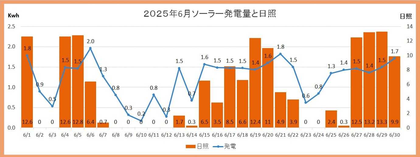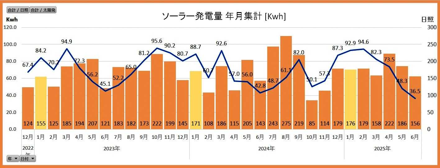 発電量が少ないのはお天気のせいにしていたのですが、収獲が済んだ梅の木の枝が予想以上に伸びて、垂直に設置し日当たりの悪いパネルは梅の木の影になっていました月末に剪定済です