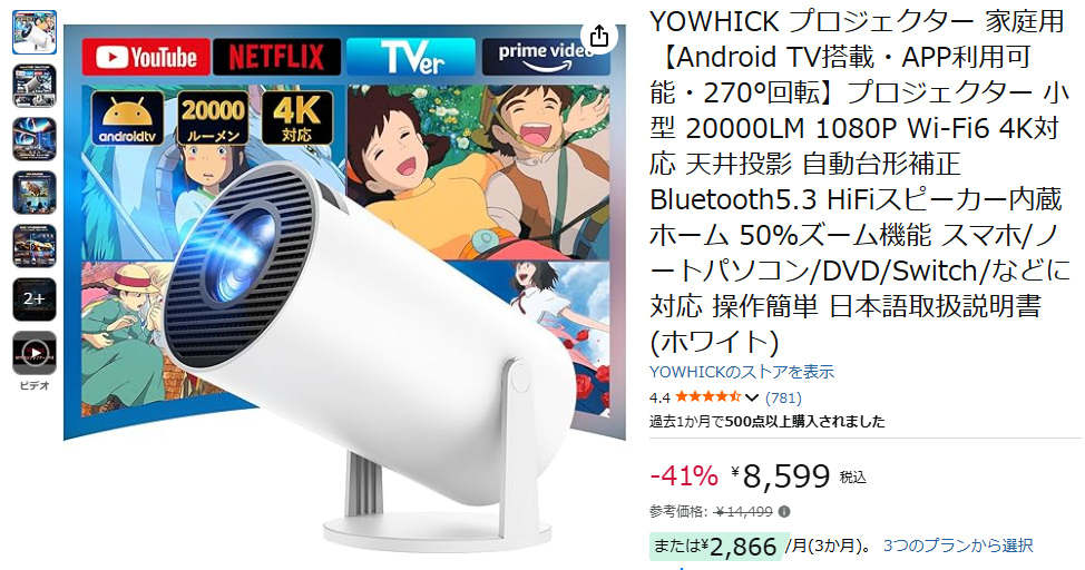 天井にも投影できるプロジェクターです類似品もたくさん出ています注:類似品には同じ形でAndroid端末機能のないものがあります・・・Android端末ですからYoutubeはもちろんTVer・NHK+・有料TV・宅内サーバーにも接続このプロジェクター、寝室で床に置いて天井に投影しますと、輝度設定を25%まで落とさないとまぶしすぎるのです、暗くしますと当然発色が悪くなりますもう一つの問題!、暗くしているのですがメニューに戻ると最高輝度だと思うんです、夜中にメニューに戻りますと!それは・それはまぶしいのです・・・セロファン紙を買ってきて光の三原色「赤・緑・青」で暗くすることはできないか試してみました、暗くはなりました・・・が、暗すぎて実用になりません、3枚のうち1枚抜けば色が?違います失敗・・・#1グレーで透けて見えるものはないか家中、探して見つけたのがパソコンのディスプレイに入っている黒い偏向パネル、丸く切って試したがこれはダメ!透けていなかった失敗・・・#2台所で思いついたのがアルミホイル・・・ピンホールカメラ!?アルミホイルに針で穴0.5mmで試すと映ったがすごく暗い、つま楊枝の大きさ2mmでまだ暗い、ドライバー5mmで程よい明るさになった、穴は真円でなくても大丈夫・・・メニューに戻っても程よい暗さになった、隅に両面テープを小さく切って貼り付けて問題可決しました注:レンズ面は吸気口になっているのでアルミホイルは光が漏れない程度に小さくしました真夜中にYoutubeを見ながらメニューに戻ってもまぶしくない幸せなプロジェクターの完成です。