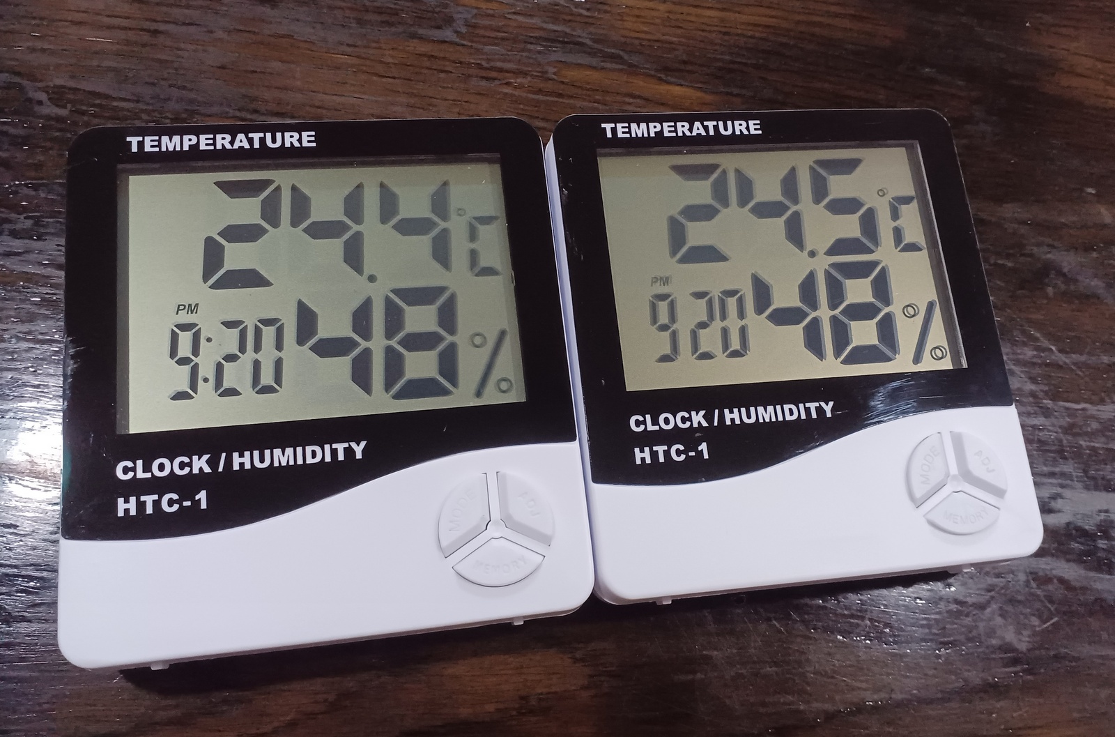 7年ほど前に2個買った温湿度計時計表示付きですが片方はすぐ壊れ1個まだ動いていますアマゾンで安かったので2個購入しましたアマゾンサイトで「HTC-1」と検索しますとこんな感じでしたGoogole検索しますと安いのがあります!498円これを2個購入しました届いたものは設定ボタンの文字に色がありません、表示窓の黒いフレームが違います、本物?は2mm厚で角が丸く本体と一体感があります、偽物!は薄いプラスチィックに印刷で本体に両面テープで張ってありずれていたのではがして位置決めをしました、表示部はケース本体白い部分との段差もそれなりですから別に製作されているようです、設定操作、反応など全く同じですからCPU?と表示部は一緒の物でしょうか?説明書はありますが日本語の記載はありません、中華製に本物はありませんから使えればお買い得です、扱い方はこちらで詳しく説明されています:https://qlife.tech/archives/221