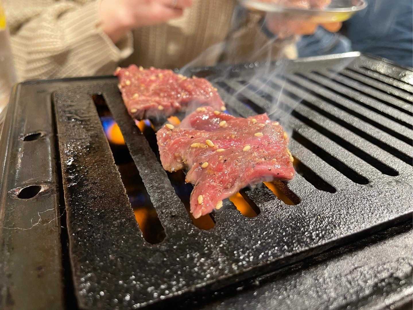 お互い焼肉の好みは似ていて牛タンに内臓系が好み。焼き方の好みは違うんだけど、タンにネギ巻いてたべると本当に美味しい😊