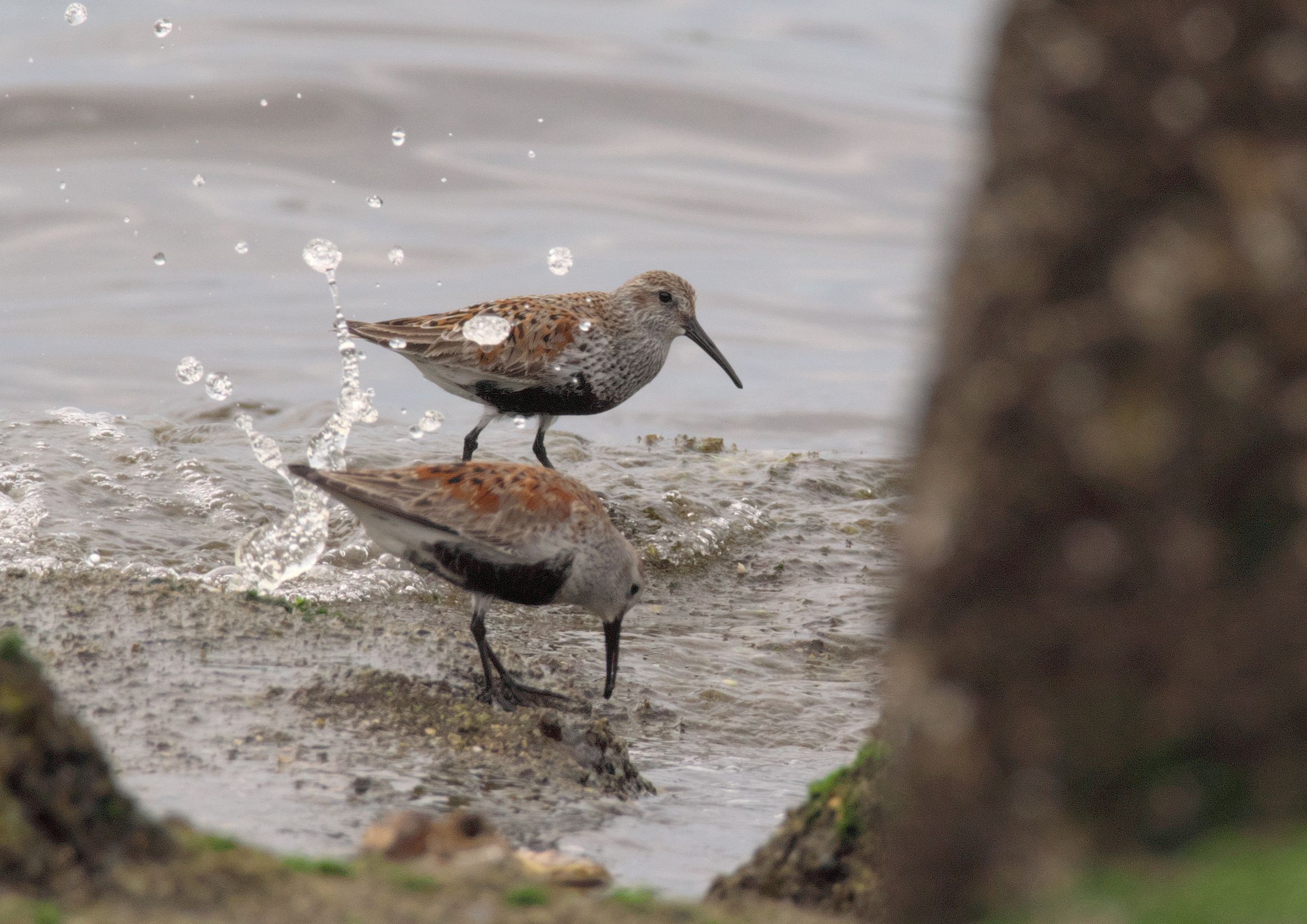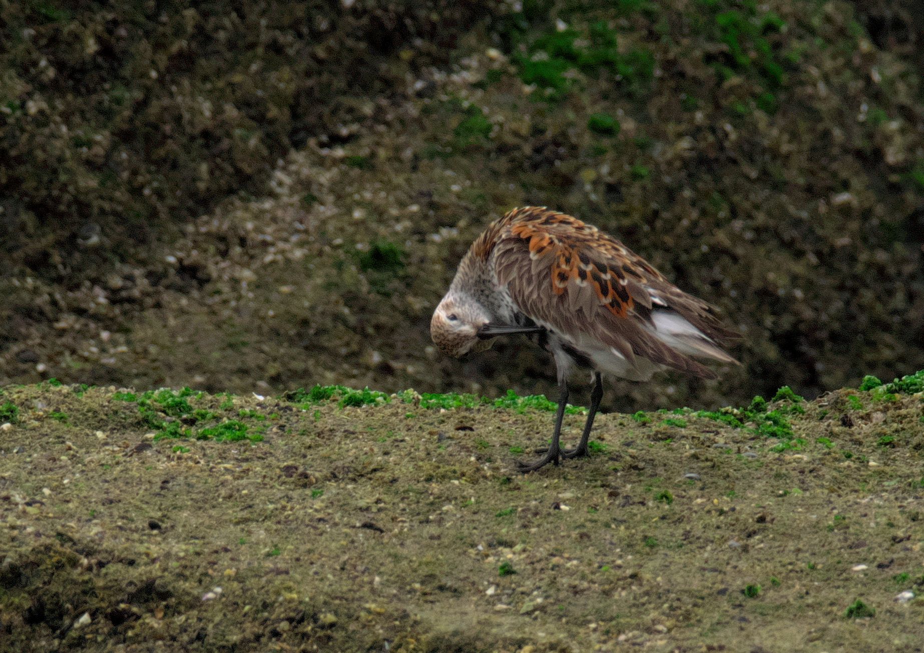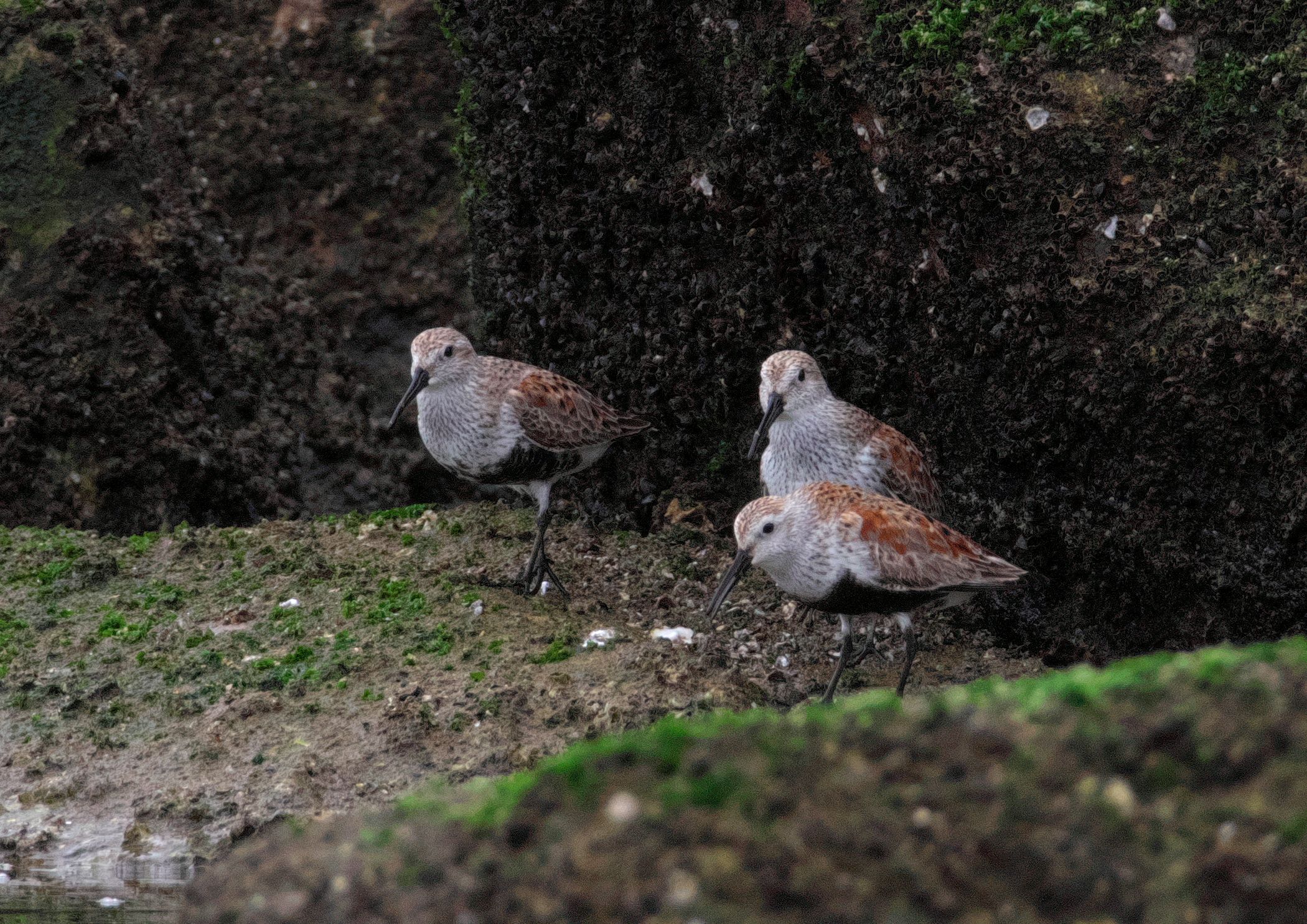 最初に見つけたのはハマシギの団体さん。