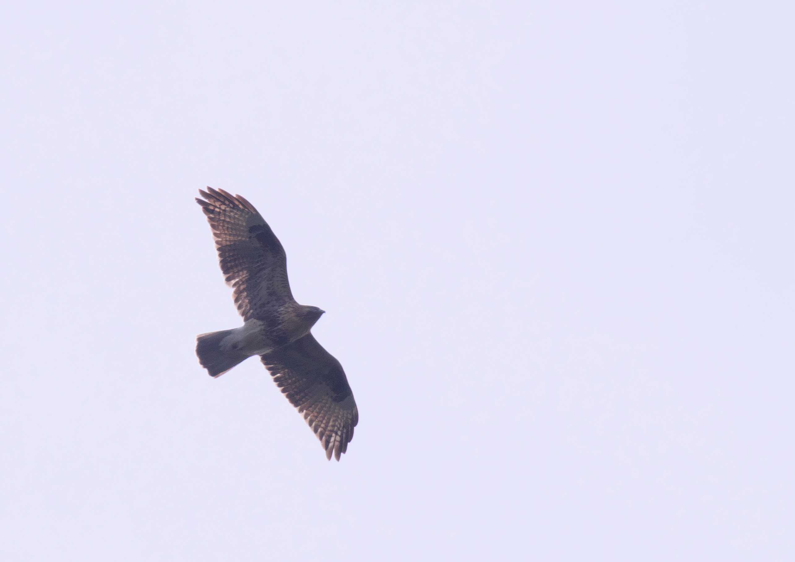 空に飛んでる猛禽。いつものハイタカかなと思ってたらノスリのようです。証拠写真。