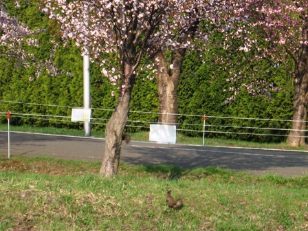 朝トレを兼ねて、きょうも森林総研に行ってみました。早朝の桜はキレイでいいですね~。そしてコイツらも花見をしてました。かわいいですね~エゾリスです。警戒しながらもカメラ目線で・・・・ありがとうございます。自宅ではブルーベリーの花が咲いていました。アブラムシが・・・・・・。