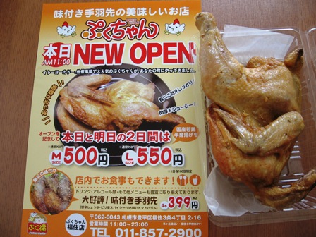 自宅の近く(でもないか)に若鶏半身揚げの店が昨日オープン。広告に釣られて、昨日早速行ってきました。Mサイズを二つ買ってきて、息子と一つずつ食べました。ちょっと、塩がきつかったな・・・・・。酒を飲みながらなら最高でしょう・・・・。いつもレトルトカレーと一緒にして食べました。きつい塩味が隠されて、おいしかったですよ。塩分取りすぎたかな?・・・・・って、きょうの血圧は・・・・やった!健康第一です。