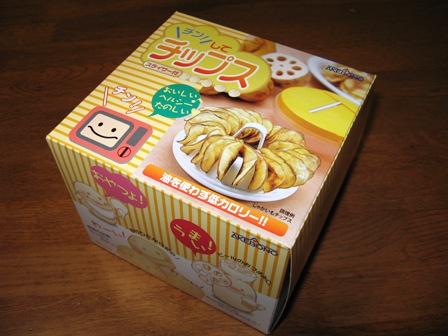 寒い日が続いてますが、やはり「リラ冷え」なんですね・・・・・。寒いといえば、競馬資金・・・・軸がウォッカと決まってるのに・・・人気薄のヒモを狙ってたのに・・・・外れる・・・・へたくそです(悲)それとは関係ないのですが、こんなの買いました。その名も チンしてチップスレンジでポテトチップができるんです。さっそく使ってみました。ちょっと黒くなったなあ・・・・。やはり。ポテチ用品種でなければダメなのか・・・・。ちなみに、今回は自宅にあったレッドムーンを使用。油を使用していないので健康的です。今度は、ポテトチップ用品種トヨシロでチャレンジしてみます。