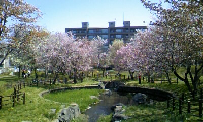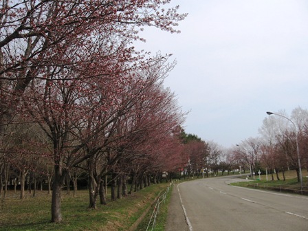 競馬はまたハズレでしたね(泣)これからG1レースが続きますが、いつ当たるのでしょうね・・・・・。みなさん、私の予想したもの以外を購入すれば当たりますよ(笑) きょうの札幌は朝から肌寒い曇り空だったのですが、競馬番組が終了し、落胆していた頃に、晴れ間が出てきました。まったく・・・・・。気分転換に自転車で森林総研まで花見に行ってきました。まだ満開ではありません。昨日より紅くなってきましたが、3~5分咲きといったところでしょう。寒かったせいか、人もいません・・・・・・・。昨日よりも来場者が少なく、警備員もヒマそうでした。おそらく明日は混雑することでしょう。