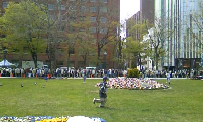 大通公園で行われたライラック苗木と花苗の無料配布に行ってきました。先着500名までの配布なのですが、なんとか間に合いました(汗)。中央に写っている少年は、まったく無関係です。引換券には165番と記載されていますが、引換券を受け取ったのはおそらく先頭から450番目ぐらいだと思います。とりあえずよかったです。