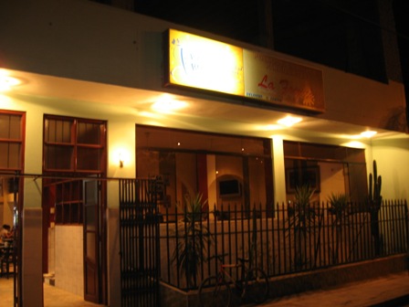 金曜の昨日、ホテルの冷蔵庫にビールが1本しか入っていなかったので「買いにいかなきゃ!」と思っていたところ、ペルーの同僚たちが「夜、食事に行こう。」と誘ってくれました。ホテルからタクシーで数分・・・、怪しげな場所にある店でした。JCBカードのステッカーが遠慮がちに貼られているのがいいですね(笑)「ピウラにしかないカクテルだよ」と言われたら飲むしかありません(--;)ホントかな(--)?ALGARROBINAっていうカクテルらしいです。樹液が原料だとかで・・・・。カクテルのことはよくわかりませんが、チョコレート味でおいしかったです!タコを焼いたものにレモン汁をかけたようなものが出てきました。これ、すっごく美味しかったです!(^^)vジャガイモもおいしかったなぁ・・・。品種名は不明です。久しぶりのサラダと山盛りのフライドポテト(品種名は不明です)。話によると、ペルーの人たちはあまりサラダを食べないのだそうです・・・。主にコメと肉の生活のため、みんなポッチャリしているらしいです。社員食堂の肉とは違って、柔らかかったなあ(笑)豚、牛、鶏の炭焼きセットってところでしょうか。もう少し食べたかったのですが、昼食のライスが多すぎた・・・・。ピスコサワーも飲みました。おいしいです!自分で作るのとは大違いでした。その後、ビール2本で終了。開始時間が21時半と遅かったので、あっという間に深夜0時を過ぎてしまいました。同僚たちはよっぽどストレスが溜まっていたのか、まだ飲み足りなさそうでした。もちろんオイラも飲み足りなかったですが・・・・・。これで一人当たり35ソル(およそ1050円)。ペルーではプチ裕福なオイラは多めに支払いましたが、日本に比べたらかなり安いですよね。おいしかったし、楽しかったなあ・・・。今週の通常勤務はあっという間に終了・・・来週からは深夜勤務です(--;)