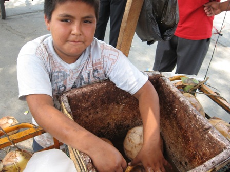未確認ですが、ようやくペルーでの生活費が振り込まれたとの話で、多少リッチな食事もできるようになったかな(笑)?それが理由というわけではありませんが、友人たちと街のレストランでディナーを楽しみました。鶏肉が有名らしいです・・・。有名なペルー料理と言われているPollo a la brasa(ローストチキン)を食べてみました。サラダとフライドポテト付きで、ペルーのワインも飲んで、計75ソル(およそ2250円)。焼きたてのローストチキン・・・おいしかったなぁ・・・・。多少なり値段の高い料理はやはりおいしいです(笑)。当たり前のことですが・・・・(^^;)きのう久しぶりにココヤシジュースの少年に会いました。市場では「お金をくれ」と付きまとう子供がいるというのに、一生懸命働く彼の姿に心を打たれます。オイラには特別に氷で冷やしたココヤシを割ってくれました。うれしかったです。ちなみに彼には「アミーゴ」と呼ばれています(笑)。ついでに、昨日食べたChorizo Espanol(スペイン風チョリソーサンド?)6ソル(およそ180円)。アヒというペルーのトウガラシをつけて食べましたが、とてもおいしかったです!やはりオイラにはジャンクフードの方が合ってるかもしれません・・・・。さて、明日は土曜日ですが、仕事となりました。ありがたい話です。順調ではありませんが、スムーズに稼働できることを願ってます。