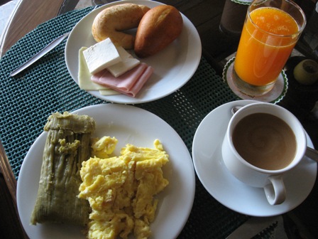 朝食です。この他に、パパイヤ、メロン、スイカを食べました。毎朝、リスが朝食のパンを狙いにくるそうです。セビッチェというペルーの代表的な料理(レストラン価格16ソル=およそ500円)。魚のマリネですかね?腹痛になるという噂でしたが、今のところ大丈夫です。肉料理が続いていたので、とてもおいしく感じました。スーパーで売られていたビールです。銘柄によりますが、1缶2ソル前後(およそ60円前後)です。安い!街の中心にある教会です。市場で購入した果物です。マンゴウが4個で1ソル(およそ30円)、ペピーノが2kgで3ソル(およそ90円)。安い!!いわゆるバッタ物です(笑)SONNY、Panasonyなど・・・・、笑わせてくれます。こちらもペルーの代表的料理ロモサルタード(レストラン価格27ソル=およそ800円)ああ、また睡魔が襲ってきました。もう寝ようかな・・・・。