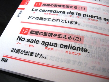今週は夜勤当番なのですが、深夜にホテルに戻るとシャワーのお湯が出ないのです。きのうは朝5時半ころ雨音で目が覚め、シャワーを浴びようとしたのですがやはりお湯が出ない・・・・。水道の水も出ない・・・(怒)。カチンときて、フロントに文句を言いにいきました。ダイソーで購入した「すぐに使えるスペイン語」の本、マジですぐに使えました(笑)ありがたいなぁ・・・・。実は最初「ノー サレ アグア」しか言わなかったからか、部屋に戻ると水道の水は出たのですが、シャワーのお湯が出ない・・・。もう一度フロントに出向き、2回目は「ノー サレ アグア カリエンテ」と言いました。部屋に戻ると、お湯の雫がポタポタと・・・・。3回目「ノー サレ アグア カリエンテ!ノー ドゥーチャ(シャワー)!」(怒)部屋に戻ると滝のようにシャワーが出ていました。どんなシステムなの??あきれるばかりです。そして今朝もシャワーが出ませんでした。フロントの担当は昨日と同じ男性だったので、すぐに分ったようです。マジでどんなシステムなのでしょう・・・・。さっき買い物に行って、その後、初めてのレストランでセビーチェを食べてきたのですが、カメラにSDカードが入っていませんでした。ショックです(泣)大失敗です。店員に「セビーチェ何時ころできる?ホテルに戻ってきたい。」と、カタコトのスペイン語で話をしたところで、通じるわけもなく・・・。店員のおねえちゃんは、どういう訳か紙ナプキンを出してきました。どんなスペイン語だったんだろう(爆)。さて、これからクリーニング店に行ってから仕事に出かけます。クリーニング店のおばちゃんが、朝、引き換え券にオイラの名前を書いてくれました。覚えてくれたようで、うれしかったです!