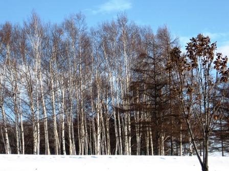 最近は、ず~っと室内で仕事をしているので、頭がおかしくなりそうです(--;)元々おかしいのに・・・・(爆) きょうは珍しく天気が良かったので、昼休みに裏山に行ってみました。白樺、青空・・・・・。 北国の春って感じですね~。でもこれから真冬を迎えるんです・・・・(笑) キタキツネの足跡です・・・。 エゾリスの足跡ですかね~(--)?今度また行ってみます。