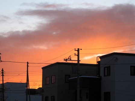 寒かったです・・・(--;)中山峠から向こう側のお隣り喜茂別(きもべつ)町では氷点下25℃まで冷え込んだとか・・・。日本ではないみたいですよね・・・(^^;)札幌も氷点下9℃だったそうで・・・・どおりで寒い・・・・(--)ぷるぷる朝の7時前・・・太陽の光が反射した雲がオレンジ色に輝きました。寒いから・・・・?きょうは雪は積もらないと言っていた天気予報は大きくハズレ、羊ヶ丘にはそこそこ雪が積もりました。昼頃には雪は止み、青空を見ることができましたが、それでも寒い・・・。そんな中、インフルエンザの予防接種に出かけました。きょうは、管理職2名とオイラとTくんの4名の順番です・・・。管理職2名が「そろそろ一緒に行く」とか「まだ行かない」とか話をしてました。出張やら振替休暇やら風邪で休みやらで出勤者が少ないため、オイラはTくんを留守番にして、管理職に見つからないように、先に一人でこっそり病院に行ってきました。オイラが予防接種に出かけている間、二人で出かけようとした管理職に対しTくんは「どうして管理職が二人で行って、ここを留守にするんですか?」と言ったとのこと・・・・エライ!どうしてって、理由は簡単!親分が出かけている間に、難しい対応の電話が来たら困るから(爆)Tくん、なかなかいい感じで成長してきましたね~(笑)でも、あまりオイラのマネをしない方がいいかもよ(爆) さて、明日は待ちに待った土曜日・・・・何しようかなあ・・・・(^^;)面倒な電話が来たら困るから、一人でどこかに出かけようかなぁ(笑)