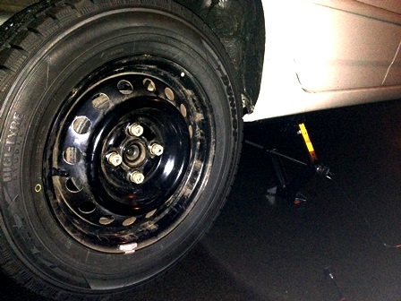 札幌は、一日中、雨・・・・。タイヤ交換は来週か再来週と思っていたのですが、明日から平地でも雪が降るのだとか・・・。 新品のタイヤなので、慣らし走行が必要ってことで・・・。夜に雨が止んだ隙きに交換・・・(^^;)タイヤ交換は20分くらいでできたのですが、物置がゴッチャゴチャで・・・(苦笑)自転車やら雪かき用具やらを出したり入れたりで・・・。 ボンビーなのでスチールホイールなんです・・・(^^;)同僚のBWさんは、アルミホイールと新品スタッドレスタイヤで17万円だったとか・・・。スゴイなぁ・・・。オイラのタイヤだと、車4台分買えちゃいます・・・(^^;)なんだろうなぁ・・・(汗) さて、明日は悪天候の中、慣らし走行しま~す(苦笑)