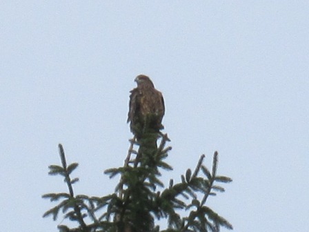 ピーヒョロロロロー・・・と、勤務先の近くのアカエゾマツのてっぺんで鳴いていました。午前10時くらいから鳴いていたのですが・・・、昼休みに外に出てみるとまだいる・・・(^^;)ということは、2時間以上もこの場所でキョロキョロしてたんですね・・・。カメラを向けていると、逃げてしまいました・・・(^^;)こんなときに一眼レフがあれば、もっといい画像が撮れたのですが・・・、残念(--;) それにしても天気が悪い・・・。外は今、大雨なんです・・・(--)明日も悪そうで・・・・。