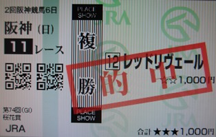 強いのがいますね・・・・。18番ハープスター。間違いなく勝ち負けなんだろうなあ・・・。現在単勝1.3倍、複勝1.1倍。確実にプラスにするなら、複勝1点買いなんでしょうね(^^;) でも、オイラはハープスターの実力は認めるけど、12番レッドリヴェールの方が強いような気がします。持ち時計もそうだけど、休み明けでも確実に差して勝っている。阪神JFでハープスターに勝ったのはもちろん評価できるけど、力のいる函館競馬場の、しかも不良馬場で勝っているのは、力のある証明なんだと信じて・・・。12番レッドリヴェールの単勝、複勝、そして、馬連12-18の1点勝負です(^^;)***********************************ハープスター、強かったですね・・・(^^;)もう逆らいません(汗)17頭まとめてのゴボウ抜き・・・圧巻でした(^^;)オイラの馬券は単勝以外は的中・・・でも、勝負した割には1000円しか買わなかったんです・・・。3歳牝馬って、何が起きるかわからないですからね・・・(^^;) 馬連も1点で的中・・・。配当は少なかったけど、当たればいいんです(^^;)来週もがんばろうっと・・・