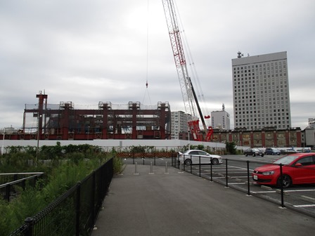 超ぶるまんの朝・・・。 穏やかな一日でした。 建設中の結婚式場・・・。少しずつ背が高くなってきました。 何階建てのビルになるのでしょうね・・・。 一方で・・・イベントが終わった赤レンガ倉庫前の会場。オイラには無関係でしたが(苦笑) こちらの帝産倉庫は・・・、歴史的建造物として残すために レンガを分析しているみたいです。 さて・・・久しぶりに早めに帰宅したのですが・・・みなとみらい周辺が舞台のドラマがあって・・・きょうも寝不足になりそうです(苦笑)