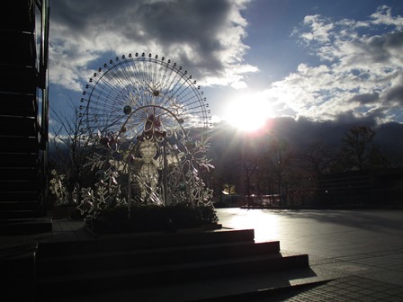 黒い雲から朝日が顔を出しました。不思議な空だったな。 今にも虹が現れそうな感じでしたが・・・ 。 昼休みには晴れ間が見えて・・・赤レンガ倉庫のKALDIの店員から、3階に大きなクマがいるとの情報を聞いて・・・ いました。なんだかダラシナイですね(笑) 仕事が終わってから、ワーポに・・・ キレイですね~。 おしゃれです! 数量限定の商品はまだまだ余裕があるみたいで・・・。どうしようかなあ…(笑) 普段使い用のメガネをかけていると、なんか疲れてしまうので・・・ めがね屋で新しいメガネを購入。 帰りが遅くなってしまった・・・ でも、相変わらず綺麗な夜景やライトアップが、心を和ませてくれる。それがハマのいいところなのかな・・・。 クイーンズスクエアのイルミネーション。朝の通勤時とは大違いです(笑) さて、明日は金曜日。忘年会で~す! 忘れちゃうくらい飲みまくるか(爆)