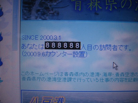 きょう、青森県の港湾のHPを見ていたら、なんとアクセス数がオール8と表示!