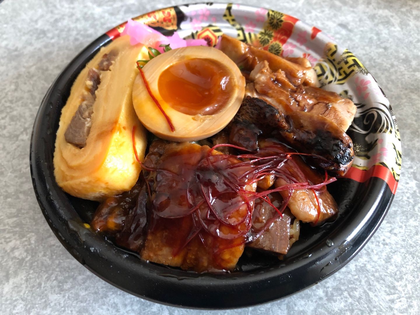 第9回東京ドームふるさと祭りどんぶり選手権グランプリ受賞の鹿児島、黒豚三昧丼。