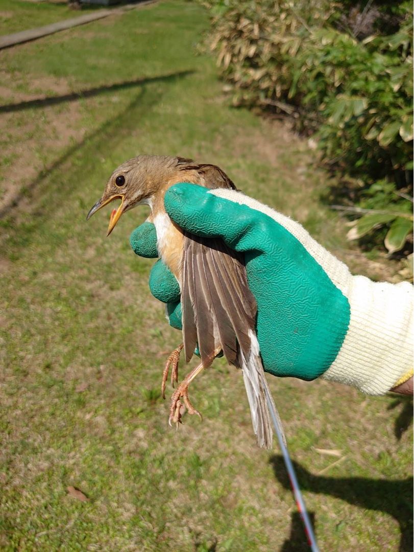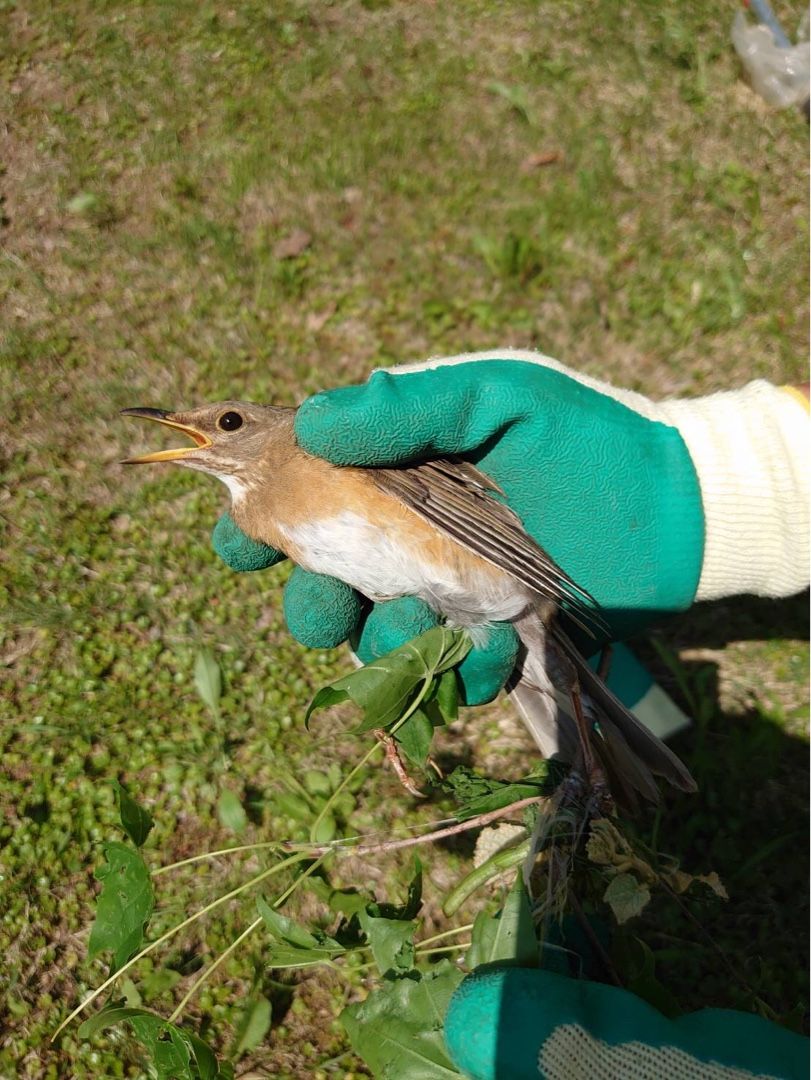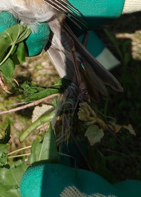 脚にスズランテープみたいなものと木の枝が絡まり、動けなかったようで…