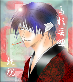 取り敢えず、いそりんとの約束なので。描きました。高杉。思えばコレが銀魂キャラ初描き!何かもっと描いてると思った。。。あ~驚いた(笑)・・・思い出した・・・;;;ラクガキなら、エリザベスが初描きです。。。なんで天人・・・んで中入ってるオッサン・・・(ガクン;;;)