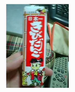 ダンナが会社で貰ってきたらしい。「お前知っとったか?」と嬉々として見せてきたので、「前にTV(ケンミンSHOW)で見た」というと、ちょっと拗ねてました。普通「きびだんご」というと、大抵の方が、岡山名産のダンゴを思い浮かべると思うんですが、何故か北海道は「ゆべし」みたいなんですよね。しかも全国区と思ってるらしい。。。何だそのポジティヴシンキング???お味はまぁ美味しいです。美味しいですが、個人的にはやっぱり慣れ親しんだ岡山の方が好きです。ダンナは結構気に入ったみたいで、4本入りのうち、3本取って行きました。最近こういう和菓子づいてます。洋菓子もですけど。Uらサンから頂いた名古屋名物の「ういろう」も食べ尽くし、「ゆかり」を現在攻略中です。美味いなぁ、「ゆかり」。「ういろう」も美味い。ついでにいうと「味噌煮込みうどん」も「ひつまぶし」も「きしめん」も大好きだ!!名古屋バンザイ!!(←なんだそれ?)洋菓子は、今おうちに、「足立音衛門」サンとこのチョコレートケーキ(ズコットではない)があって、少しずつ大事に食ってます。あと、もう在庫ないんですが、3種のいちじく&キャラメルケーキってのがあって、それはあと一切れになりました。ドライいちじくのつぶつぶがたまらん!!実家の母親の誕生日に、と買っておいたんですけど、只今絶賛入院中なので、そのまま引き取ったんですけど、こういう美味いのは人にやるもんじゃねぇな。しかも、うちの母、「ひとくち食べたい」とかいうから、こっそりラップに包んで持っていったのに、寝たまま食べているのと、飲み物がない状態で食べたってんで、「・・・美味しくない、もう二度といらん」と抜かしやがりましたよ。安心しろ。二度とやらん!!という訳で、ひとりで貪っているんであります。ゲフ。ようやく六花亭の「7月のおやつやさん」が終了しました。「8月のおやつやさん」をどうするか検討中。久々に「花畑牧場」の生キャラメルが食べたくなったんですけど、今全然買えないんですね~;;;ずっと完売状態。でも、たまたま見てた関西ローカルの番組にタナカヨシタケ氏が出てて、「生キャラメルは完全家内工業」って言うのを聞いて、そら市場に中々出ないな、と諦めました。グズ;;;さっき、おなかが減ったので、何かないかな、と冷蔵庫探ってたら、明太子入り魚肉ソーセージがあったので、齧り付いてたら、ダンナが「・・・いくらオレの前やからって、そんなエロい食い方するな!」と怒られました。・・・確かにあの色あの太さは、とあるブツを連想させますが(コラ!)んでもって、とある行為をも連想させますが(だから!!)そういう事は、1本目で言って欲しかった。。。なんで3本も食った後で言うんだろ・・・何だか居た堪れない気分。。。;;;