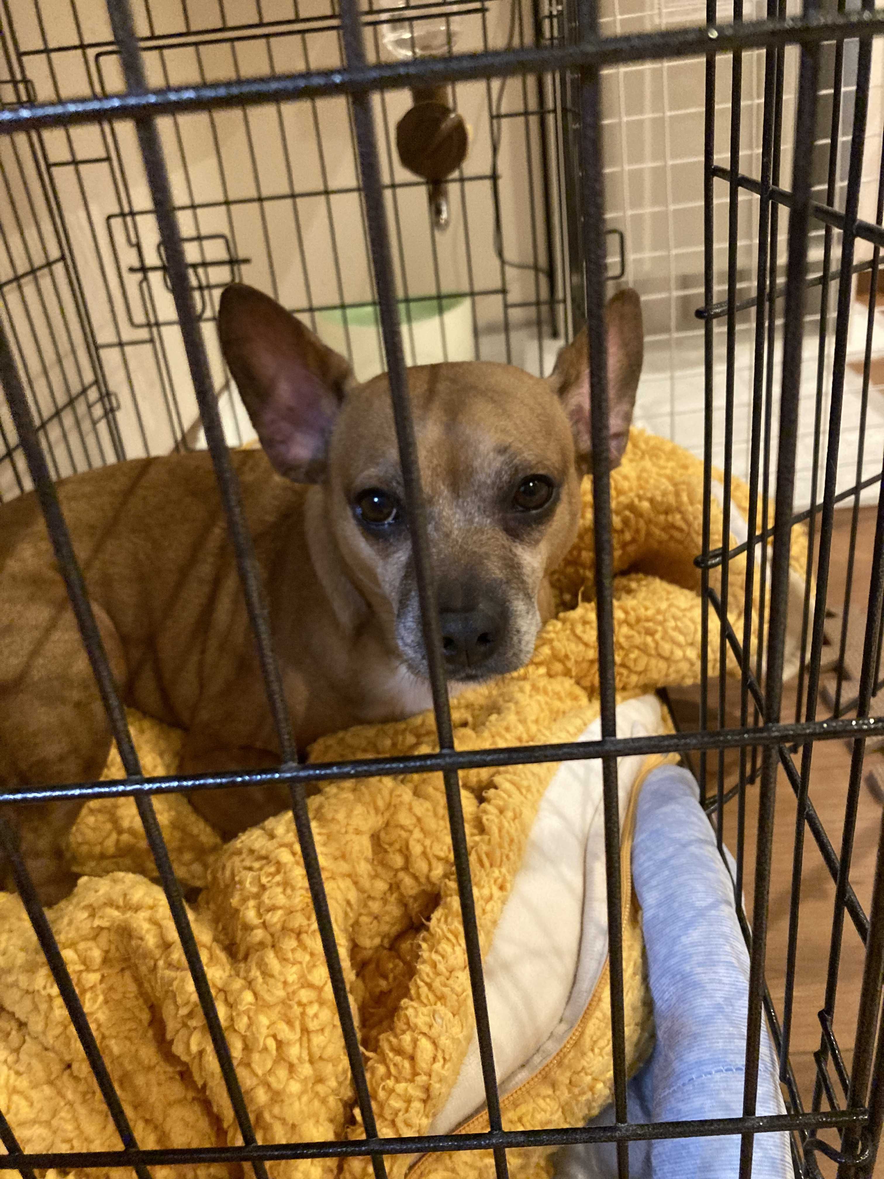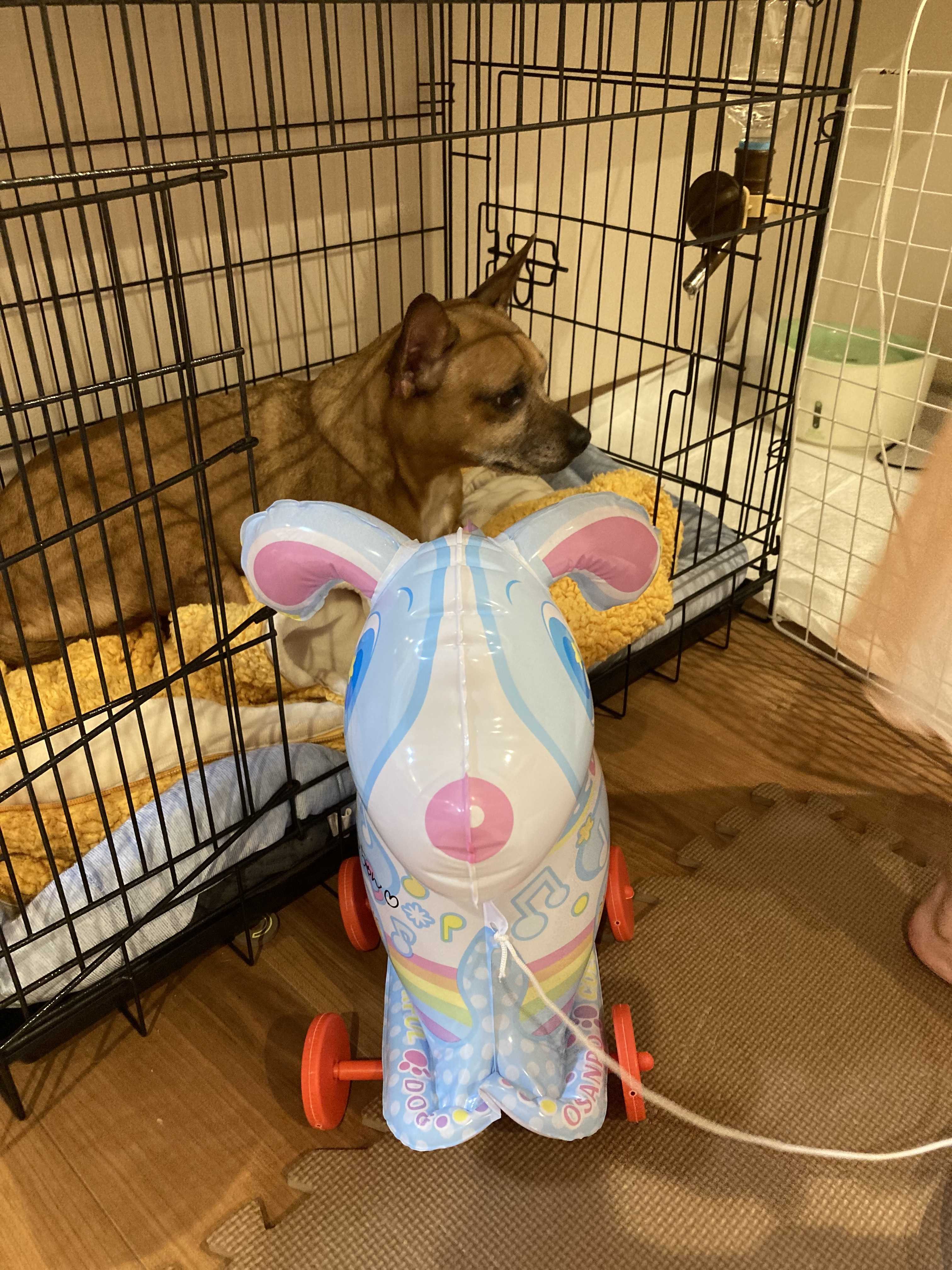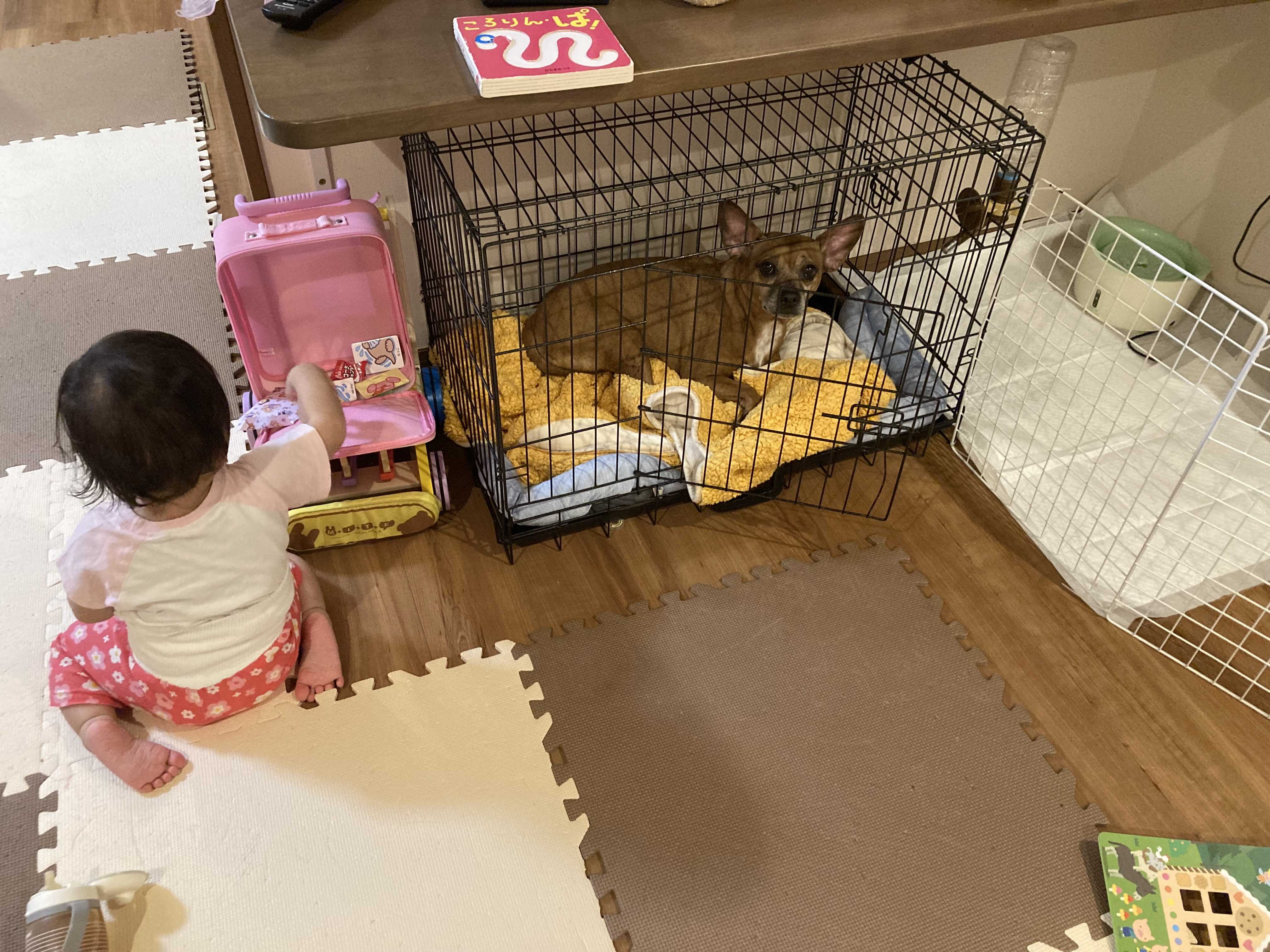 そのせいで先輩犬のマツコはケージに追いやられてます、、