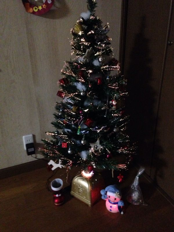 息子と大騒ぎしながらクリスマスツリーを飾りました。 去年はツリーより小さかったはずの息子が今年は同じ高さになっててびっくり。 Σ( ̄。 ̄ノ)ノ ファイバーツリーなので部屋を暗くして、いろんな色に変わっていくツリーを眺めながら「きれーだねぇ」とほのぼのしてました。 (=´∀`)人(´∀`=)
