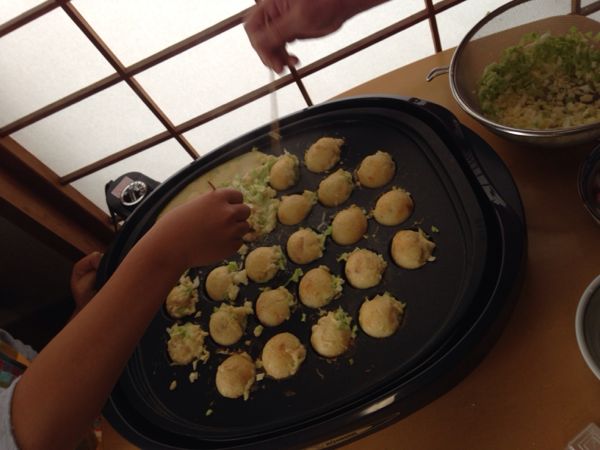 今日は朝から雨だったのと、私の体調がイマイチなのもあって引きこもり。σ(^_^;) で、家で出来る楽しいことをしようとお昼ご飯にたこ焼き作りに初挑戦! こんなんでいーの?と不安になりつつ息子と大騒ぎしながら作りました♪ 見た目はちょっといびつだったけどばーばと息子と「これハズレだー!タコがいないー(>_