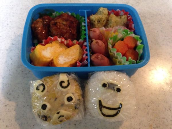 今日は遠足! …雨で延期だけど。(T ^ T) とってもビミョーなウィスパーとコマじろう。 息子の感想は「ウィスパーと…ネコ?」 Σ( ̄。 ̄ノ)ノ コマじろうは犬ですけどっ! それでも喜んで食べてくれてることを願いつつ、母も会社で失敗作のウィスパーとコマじろうを食べております♪
