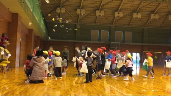 昨日は今年度最後の体操教室でイベントがありました。 皆でお菓子やおもちゃを持ち寄って『お菓子撒き大会』 園児組も小学生組もその兄弟も一緒になって先生が投げたお菓子やおもちゃを拾いました。 ε=ε=ε=ε=ε=ε=┌(; ̄◇ ̄)┘ あまり要領の良くない息子の収穫は少なめでしたが、本人はカードをいっぱい拾ったと満足してたので良かったのかな?(^^;;