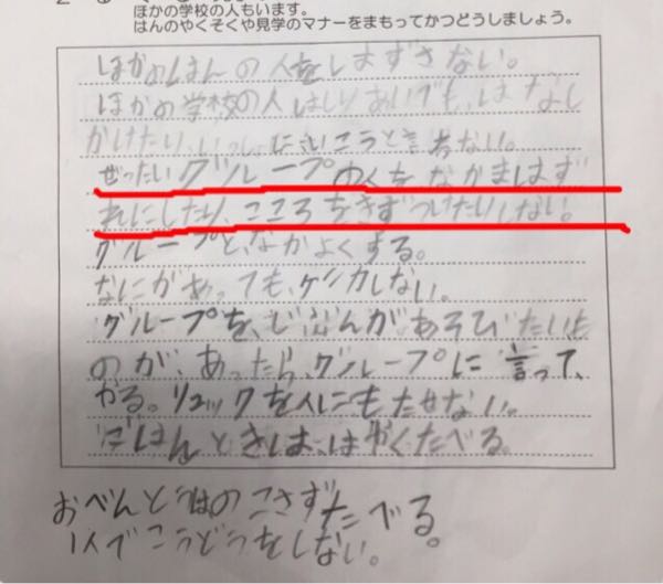 今日は授業の一環で公共交通機関を使っての社会科見学です。 バス代と往復のJR代を持って、お弁当持って出かけました。 事前に班で約束事を決めていったようで、そのメモを見たら微笑ましくて…(*´ω`*) 『ぜったいグループの人をなかまはずれにしたり、こころをきずつけたりしない』 (=´∀`)人(´∀`=) とっても大切なことだと思います。^ ^ 今頃、仲良くお弁当食べてるかなぁ?