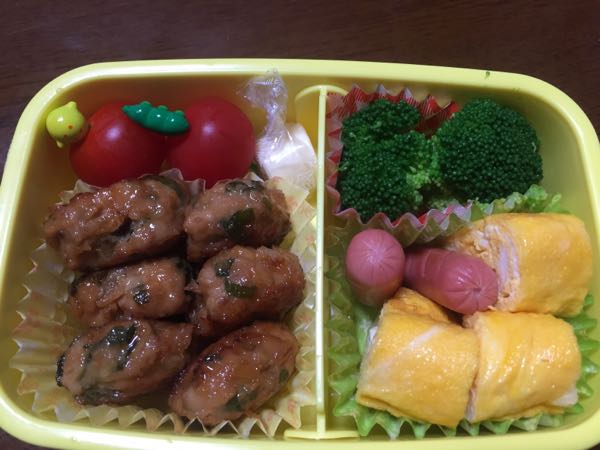 昨日で給食が終わって、今日からお弁当が始まりました。 春休み直前お弁当第1弾! 『おかずは何がいい?ハンバーグ?唐揚げ?つくね?』 「焼肉!!」 なんか可愛くない…(−_−;)