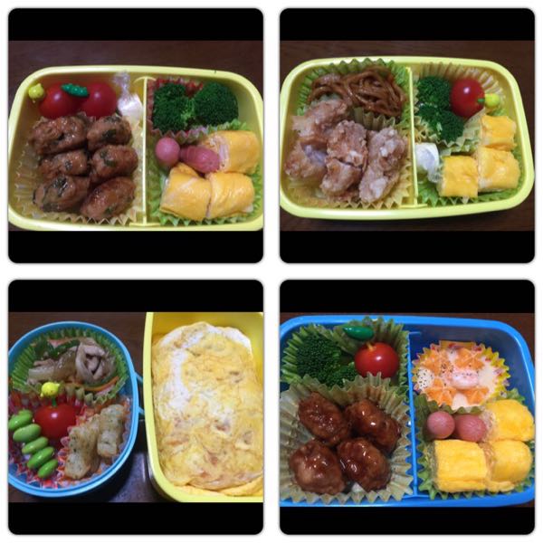とりあえず1週間のお弁当生活。 メインのつくね、唐揚げ、オムライス、ハンバーグ以外はかぶりまくりデス。(//∇//) 実はさり気なくプレーンな卵焼きとチーズ入りの卵焼きがあったりもするのですが、ブロッコリーとミニトマト大活躍です。( ̄▽ ̄) ウィンナーもスキマ埋めに参加しまくりです。 いつも完食してくれてありがとー!! ☆*:.。. o(≧▽≦)o .。.:*☆