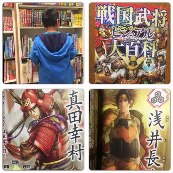 今日は息子のリクエストで本屋さんへ。 『戦国武将大百科』をお買い上げ♪ 息子のお気に入りは真田幸村だそーです。 私は浅井長政がかっこいいと思います。 (実物は知らないケド…( ̄▽ ̄;)