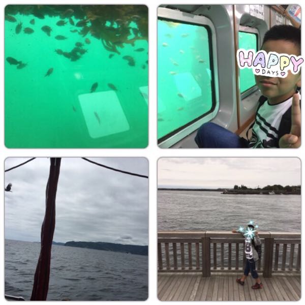 2日目の日曜日。 雨があがったので船底がガラスになってて、海中が観れる遊覧船に乗って湾内遊覧を楽しみました。 そして熱海城のトリックアート迷宮館へ。 トリックアートなんて興味無いよーなんて事を言いつつ、全ての作品の前でポーズをとる息子。(笑)
