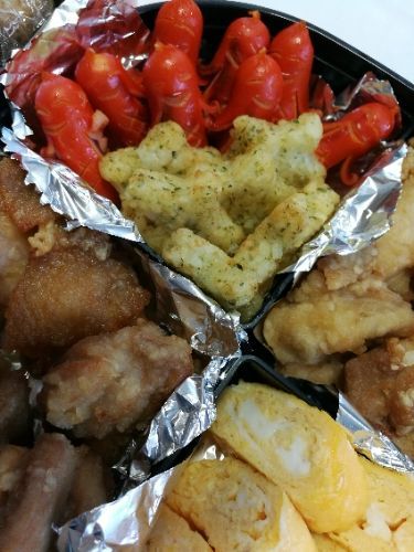 めちゃめちゃ暑かった運動会。 張り切って息子の勇姿をビデオにおさめてきました。 なかでも1列に並んだ4人で棒を持って走るリレー(通称、台風の目)、それまで3位だったのを息子のグループが抜かして1位に!! すごかったんだよーと帰宅してからビデオ再生。 … ……あれ?画面に見えるのは撮影ポイントに移動している私の足。 !Σ( ̄□ ̄;) 移動してるときに録画になってて、競技が始まったら録画停止に… …ごめん。_| ̄|○ らっ来年のソーラン節はちゃんと撮るから!! ρ(тωт`) ちなみにお弁当には宇宙人襲来です。